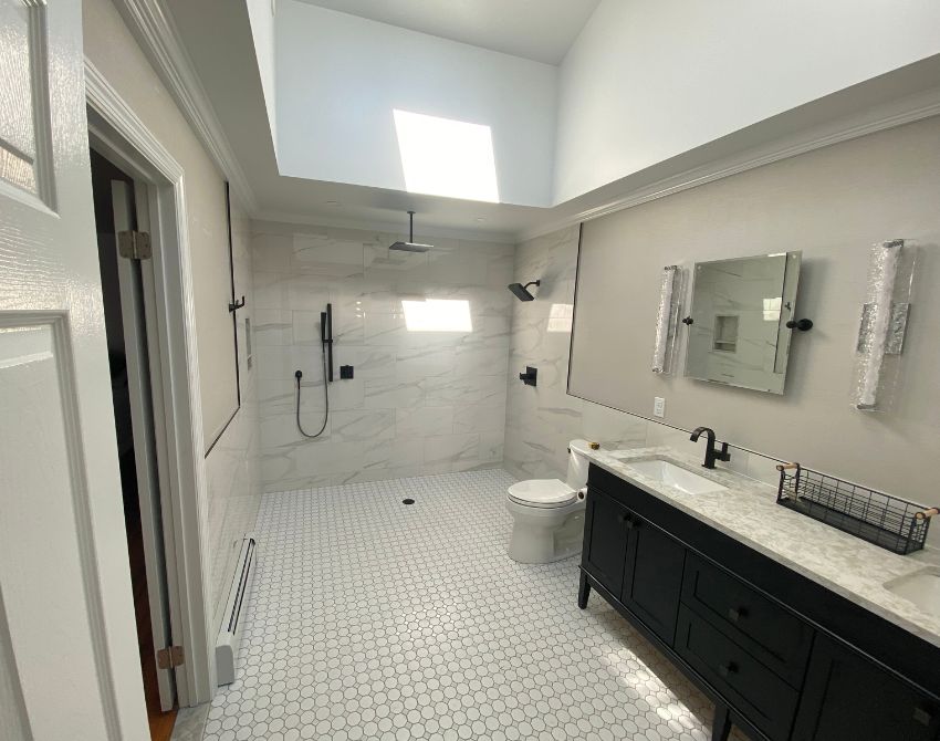 A complete bathroom overhaul replaced dated finishes with a streamlined, modern layout built for everyday comfort.